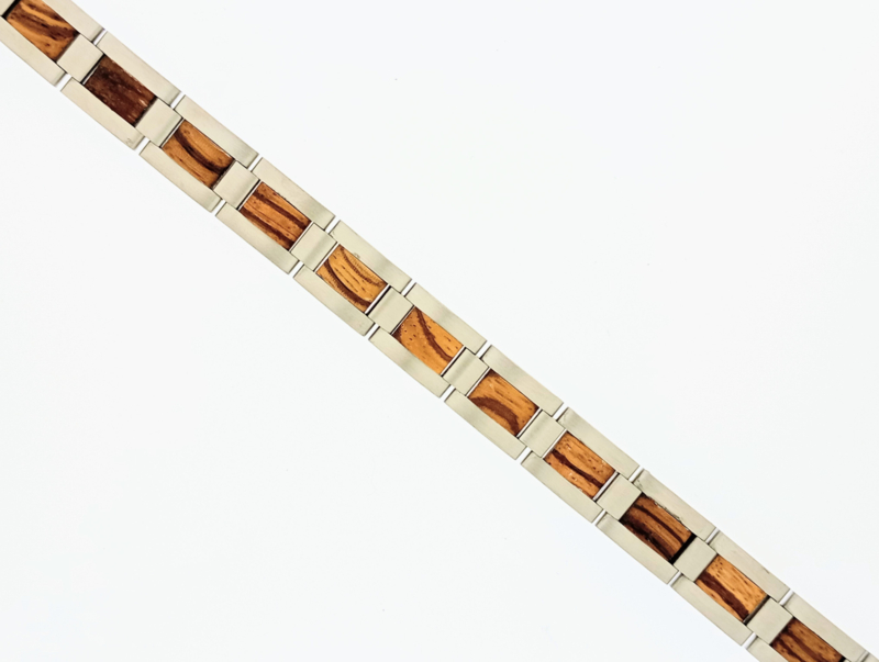 Artikelnummer: X14 OverzichtDe houten armband Tyno is een elegante en armband die de zachte nerven van het zebra hout stijlvol combineert met het prachtige zilveren RVS. De band is slechts 14mm breed en 4mm dik, waardoor deze subtiel aanwezig is om de pols. Een geweldig sieraad op zichzelf De armband komt in een lengte van 21cm, wat voor de meeste mensen ruim voldoende is. Moet de maat anders wij maken de armband op de juiste maat, geef dit aan bij je bestelling