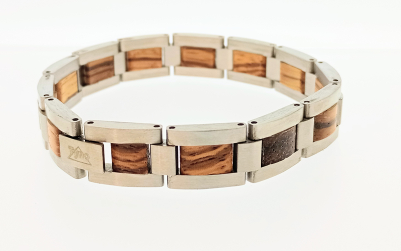 Armband edelstaal Zebra hout
