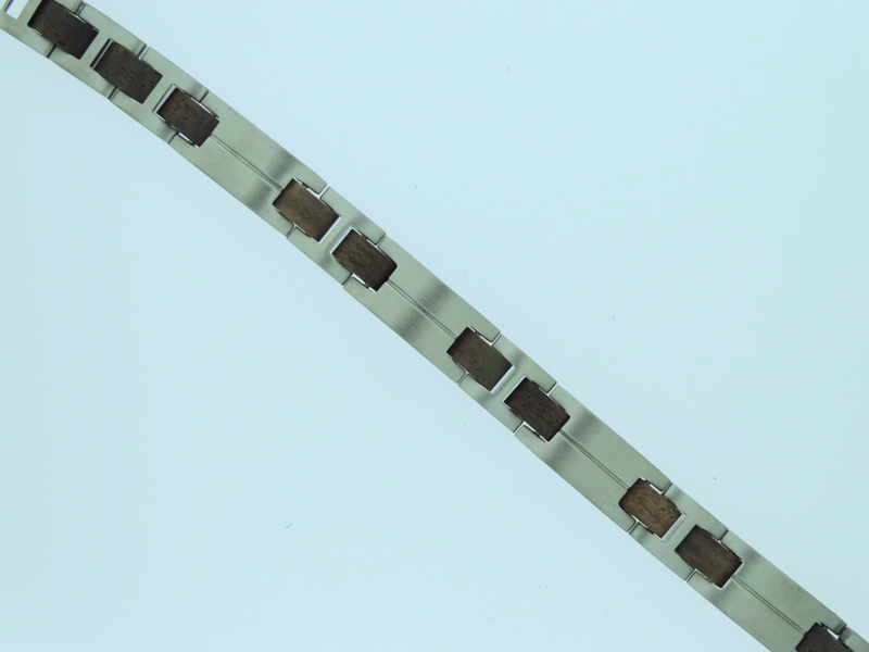 Artikelnummer: X8 OverzichtDe houten armband Tyno is een elegante en armband die de zachte nerven van het notenhout stijlvol combineert met het prachtige zilveren RVS. De band is slechts 14mm breed en 4mm dik, waardoor deze subtiel aanwezig is om de pols. Een geweldig sieraad op zichzelf De armband komt in een lengte van 21cm, wat voor de meeste mensen ruim voldoende is. Moet de maat anders wij maken de armband op de juiste maat, geef dit aan bij je bestelling